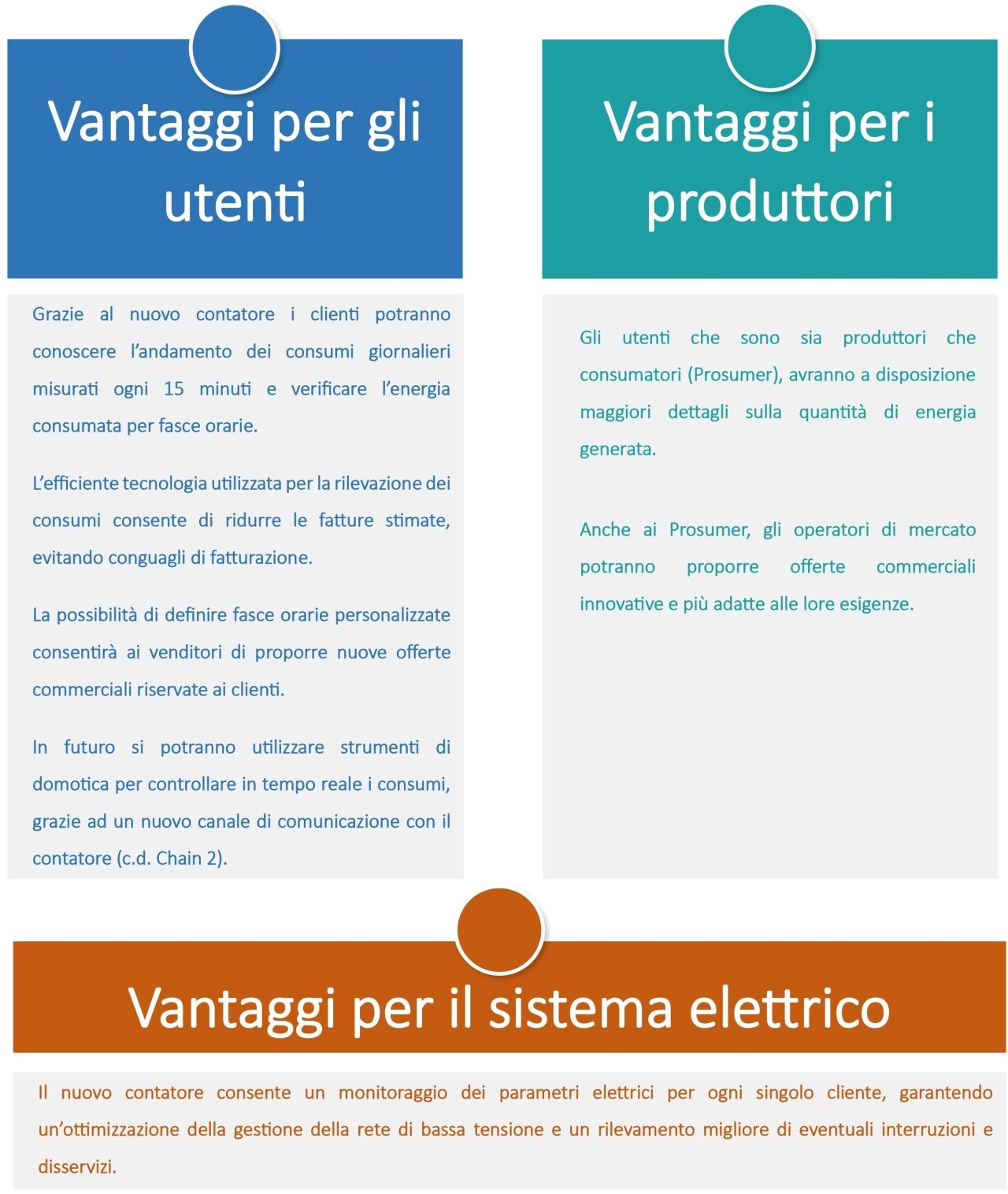 La sostituzione degli attuali contatori con quelli di nuova generazione è legata a provvedimenti normativi. In particolare i nuovi contatori, al contrario dei contatori attuali, soddisfano i requisiti richiesti dal D.Lgs. 102/2014 (di recepimento della direttiva europea 2012/27/UE sull'efficienza energetica). Sono infatti in grado di fornire informazioni sui tempi di utilizzo dell’energia elettrica al fine di promuovere l’efficienza energetica, aumentando la consapevolezza dei comportamenti di consumo degli utenti e favorendo la concorrenza nei servizi post-contatore. Con la sostituzione dei contatori Idroelettrica Valcanale garantisce un servizio innovativo e di qualità ai propri clienti in linea con gli obiettivi europei e nazionali in materia di efficienza energetica.Quali contatori verranno sostituiti?